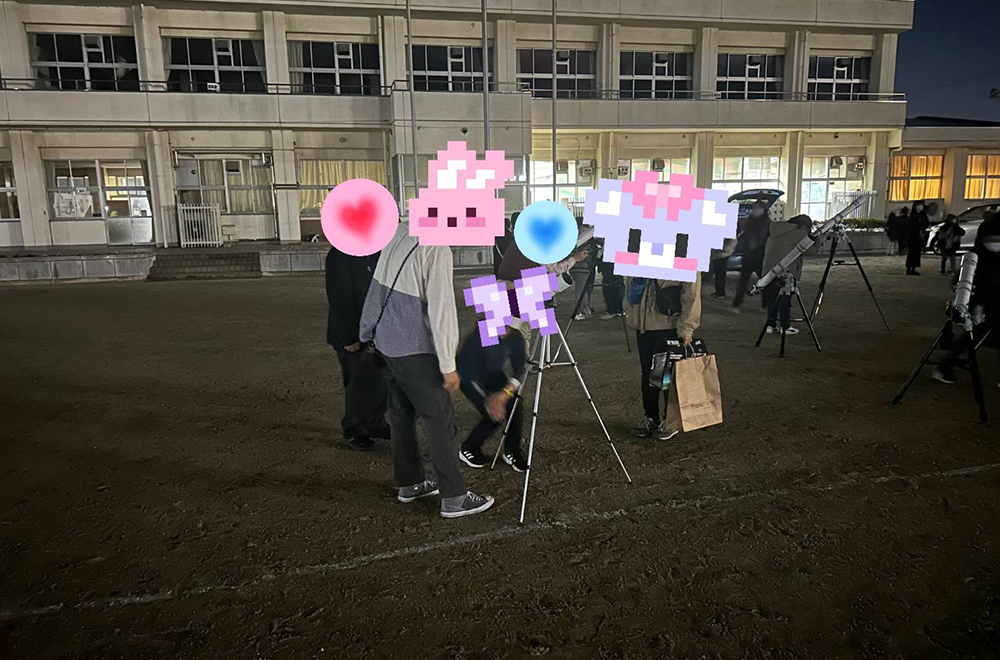 「中部大学 天文台サークル」の学生ボランティアと大学教授、津島天文クラブ伊藤敏彦先生にお手伝いいただきました。